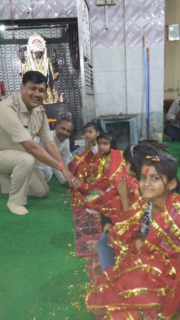 पथवारी माता मंदिर पर अकराबाद थाने के इंस्पेक्टर डीके सिसोदिया ने मां जगदंबे की पूजा अर्चना की एवं छह कन्याओं का पूजन किया। इस अवसर पर कन्याओं को फलाहार कराकर उन्हें उपहार एवं दक्षिणा भेंट की गई। इस अवसर पर धर्मेंद्र शर्मा, बीरो लाला, चेतन शर्मा, मुरारी लाल कश्यप, जगदीश कश्यप, कन्हैया शर्मा, दीपांशु शर्मा आदि मौजूद रहे।