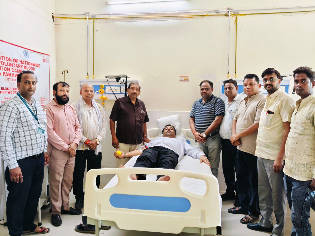 सिकंदराराऊ : लोकप्रिय नेता देश के प्रधानमंत्री नरेंद्र मोदी का 75 वां जन्मदिन बड़ी धूमधाम से मनाया गया। नरेन्द्र मोदी का जन्मदिन सेवा पखवाड़ा के रूप में पूरा देश मे मनाया जा रहा है जो 17 सितम्बर से गाँधी जयंती तक चलेगा।इसी के तहत सिकंदरा राव मंडल में सरकारी हॉस्पिटल सीएचसी पर एक रक्तदान शिविर का आयोजन किया गया जिसमें जिला हॉस्पिटल हाथरस से आयी हुई टीम के द्वारा आए हुए सभी लोगों का ब्लड लिया गया। रक्तदान शिविर में सूरज वार्ष्णेय मंडल उपाध्यक्ष के द्वारा रक्तदान किया गया। शिविर की अध्यक्षता मुकुल कुमार गुप्ता मंडल अध्यक्ष भाजपा की।