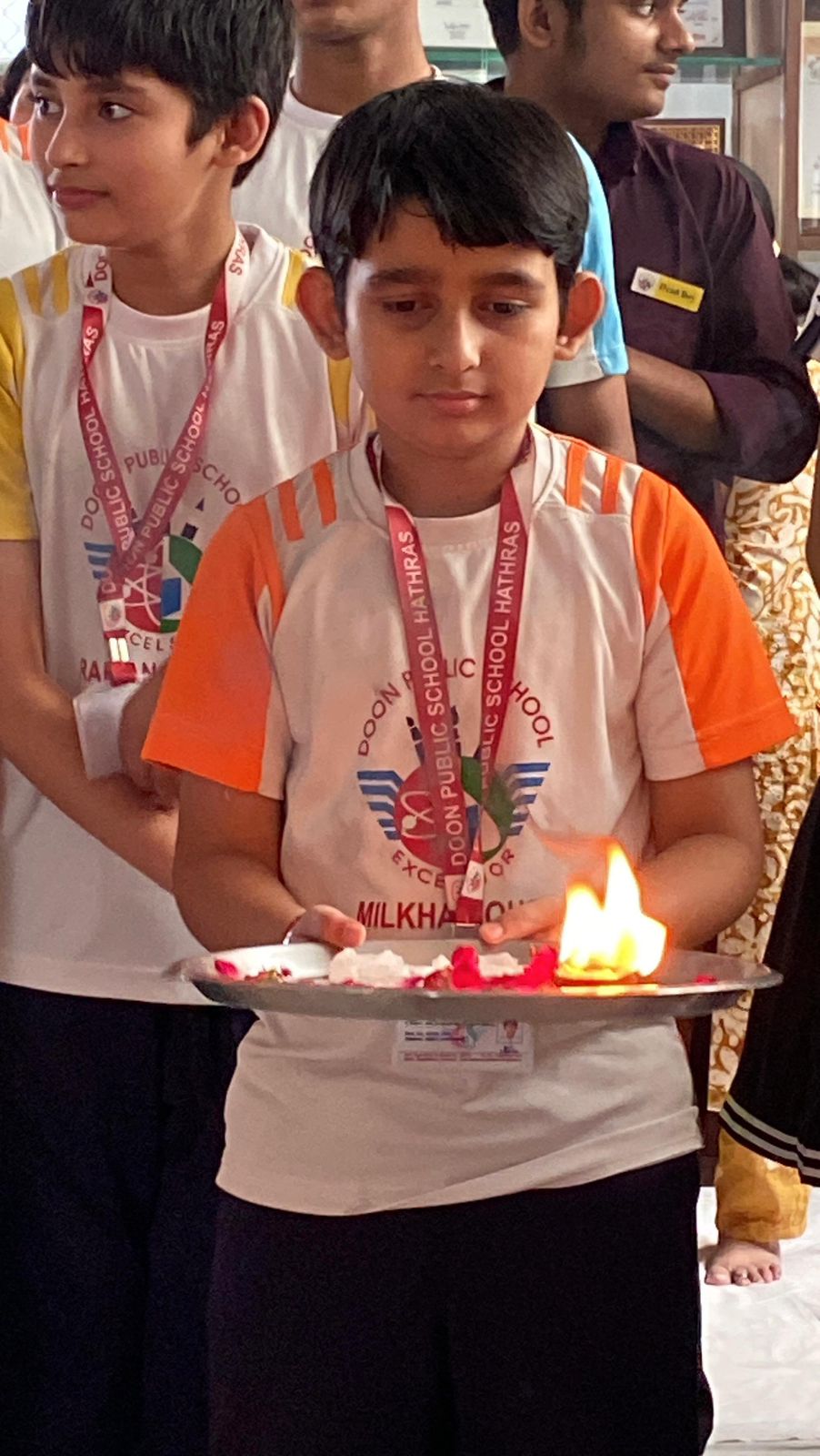 आज दिनांक 18 अक्टूबर 2025 को दून पब्लिक स्कूल, हाथरस में दीपावली पर्व धनतेरस के उपलक्ष में विद्यालय प्रधानाचार्य जे०के० अग्रवाल के प्रेरणादायी दिशा-निर्देशन में मां लक्ष्मी एवं बुद्धि प्रदाता गणेश पूजन समारोह का भक्ति में वातावरण में हर्षोल्लाह के साथ आयोजन किया गया।