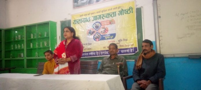 हाथरस : श्यामकुंज स्थित एम.एल. डी.वी पब्लिक इंटर कॉलेज में सामाजिक कार्यकर्ता श्रुति मिश्र के संयोजकत्व में यातायात जागरूकता गोष्ठी आयोजित हुई। जिसकी अध्यक्षता विद्यालय के डायरेक्टर स्वतंत्र कुमार गुप्ता ने की।