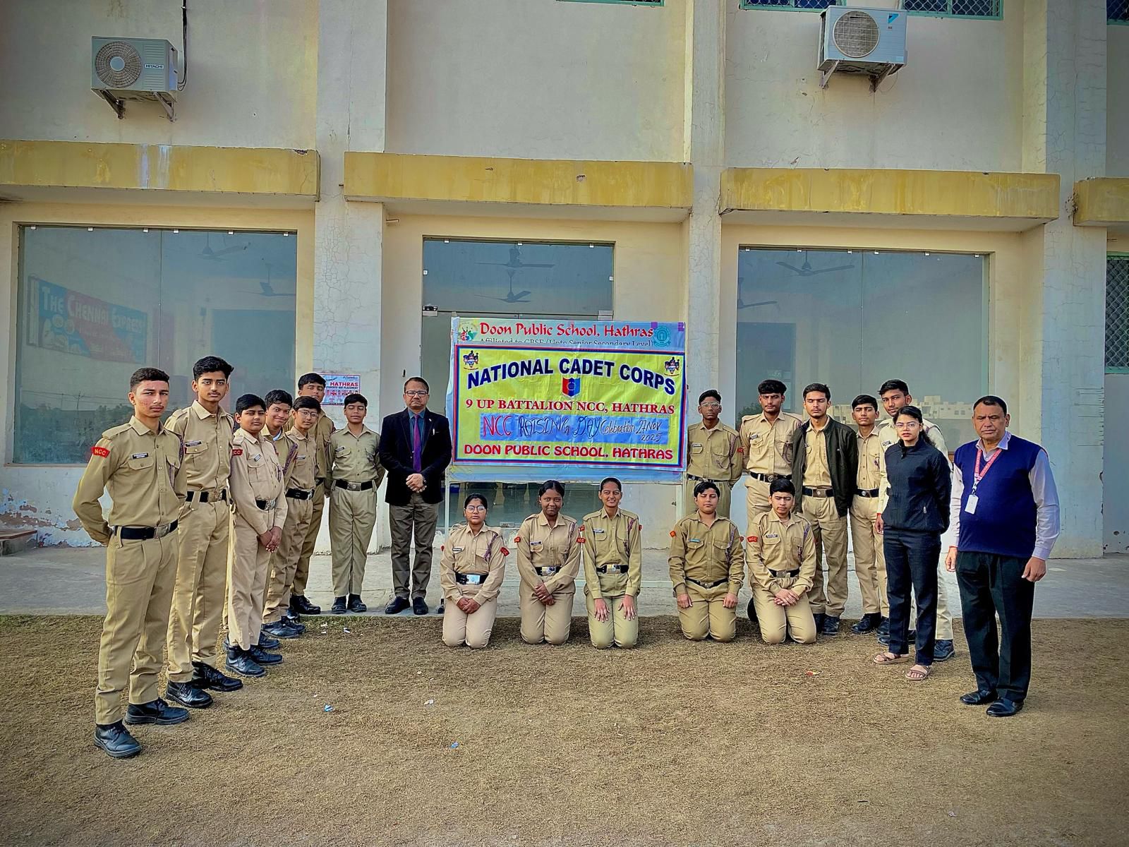 हाथरस : दून पब्लिक स्कूल, हाथरस में आज दिनांक 27 नवंबर 2025 को विशेष प्रातःकालीन सभा के दौरान एनसीसी का 78वां स्थापना दिवस बड़े ही उत्साह, अनुशासन और देशभक्ति की भावना के साथ मनाया गया। कार्यक्रम का आयोजन विद्यालय के प्रधानाचार्य जे.के. अग्रवाल के उत्कृष्ट निर्देशन सम्पन्न हुआ।