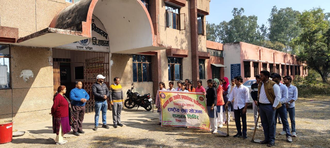 सिकंदराराऊ : गुरुवार को महाराणा प्रताप राजकीय स्नातकोत्तर महाविद्यालय में प्राचार्या प्रो. शैफाली सुमन के कुशल दिशा-निर्देशन और राष्ट्रीय सेवा योजना के प्रभारी विश्वनाथ प्रताप सिंह के प्रभारत्व में राष्ट्रीय सेवा योजना के तीन दिवसीय सामान्य शिविर का शुभारंभ हुआ। सामान्य शिविर के शुभारंभ के सुअवसर पर महाविद्यालय की आदरणीय प्राचार्या प्रो. शैफाली सुमन ने समस्त प्राध्यापकों की गरिमामयी उपस्तिथि में वॉलिंटियर्स को राष्ट्रीय सेवा योजना के उद्देश्यों को प्रकट करने वाला अपना बौध्दिक मार्गदर्शन एवं आशीर्वाद प्रदान किया। सामान्य शिविर के प्रथम दिन वोलियंटर ने स्वच्छ्ता के प्रति जागरुकता उत्पन्न करने के लिए महाविद्यालय एवं उसके समीपवर्ती क्षेत्रों में स्वच्छता अभियान चलाया। इस दौरान वोलियंटर ने महाविद्यालय के अग्रवर्ती सड़क मार्ग से गुज़रने वाले नागरिकों को स्वच्छता और उसके लिए आवश्यक उपकरणों के बारे में जागरूक किया। वॉलिंटियर्स ने स्वच्छता अभियान चलाने के क्रम में ‘स्वच्छता पर चर्चा सत्र’ का भी आयोजन किया, जिसमें उन्होंने विभिन्न प्रकार से स्वच्छता रखने की विधियों, घरों में सूखा व गीला कूड़ा अलग-अलग रखने, प्लास्टिक का कम से कम उपयोग करने, बाज़ार हेतु बैग का प्रयोग करने, घर एवं गलियों में पानी का जमाव रोकने के प्रति अपने विचार प्रकट किए।