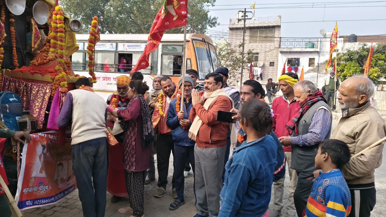 हाथरस : 20 दिसंबर श्री बालाजी आश्रम बालाजी मंदिर कांधरपुर बरेली से चलकर हाथरस गोवर्धन के रास्ते श्री सालासर बालाजी धाम यात्रा का आज नगर पालिका परिषद हाथरस के निवर्तमान अध्यक्ष पंडित आशीष शर्मा जी ने स्थानीय मेडू रोड स्थित अपनी पेट्रोल पंप पर जोशीला स्वागत किया निवर्तमान पालिका अध्यक्ष पंडित आशीष शर्मा जी ने रथ पर विराजमान श्री बालाजी की पूजा अर्चना की प्रसाद लगाया और सभी पैदल यात्रियों को प्रसाद वितरण किया । आपको बताते चलें कि बरेली के कांधरपुर से 17 दिसंबर से प्रारंभ होकर यह पदयात्रा 21 दिसंबर श्री गोवर्धन पहुंचेगी तथा 24 दिसंबर को बालाजी धाम जाकर संपन्न होगी ! यह यात्रा श्री बालाजी दरबार सेवा समिति के अध्यक्ष श्री बनवारी लाल शर्मा जी के सानिध्य में चल रही है ! श्री बनवारी लाल शर्मा ने बताया की पदयात्रा से पूर्व सभी पदयात्री 40 दिन का उपवास करते हैं तत्पश्चात शोभा यात्रा निकाली जाती है ।