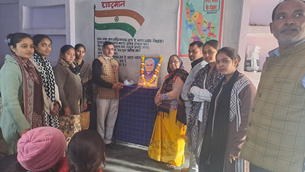 सिकंदराराऊ : मोहल्ला नौखेल स्थित न्यू लाइफ पब्लिक स्कूल में पूर्व प्रधानमंत्री अटल बिहारी वाजपेई की जन्म शताब्दी मनाई गई जिसका शुभारंभ भाजपा नेत्री संतोष पौरुष ने दीप प्रज्वलित करके किया। स्कूल के प्रधानाचार्य रविंद्र शर्मा ने पूर्व प्रधानमंत्री के चित्र पर माल्यार्पण कर एक कविता सुनाई। भाजपा नेत्री संतोष पौरुष ने पूर्व प्रधानमंत्री अटल बिहारी वाजपेई के जीवन चरित्र पर प्रकाश डालते हुए विस्तार पूर्वक उनके बारे में बताया। इस अवसर पर राकेश यादव, श्याम कौशिक, महेश यादव, संध्या वार्ष्णेय, सना खान, अजय यादव, खुशबू , राधा, दिया वार्ष्णेय ,कोमल अंजलि , नीलम सक्सेना, विनीता पौरुष, नसरीन अंसारी आदि मौजूद रहे।