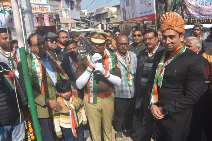 हाथरस। 77वां गणतंत्र दिवस समारोह रामलीला मैदान स्थित प्रेस क्लब ऑफ हाथरस कार्यालय पर अत्यंत हर्षोल्लास एवं गरिमामयी वातावरण में मनाया गया। कार्यक्रम के मुख्य अतिथि जिलाधिकारी अतुल वत्स एवं पुलिस अधीक्षक चिरंजीव नाथ सिन्हा रहे। दोनों अधिकारियों ने संयुक्त रूप से मां सरस्वती के चित्र पर माल्यार्पण कर कार्यक्रम का शुभारंभ किया तथा ध्वजारोहण कर राष्ट्रीय ध्वज को सलामी दी।