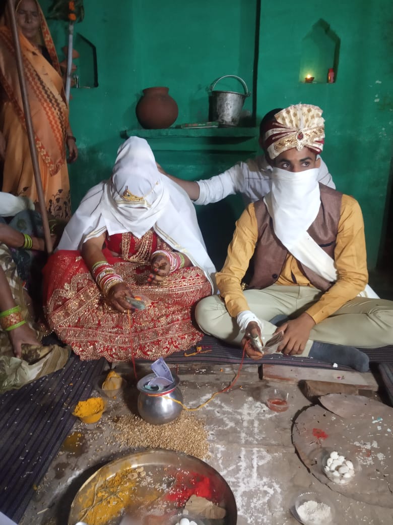 कोरोना वायरस महामारी के बीच शादी समारोहों में एहतियात बरती जा रही है। सादाबाद क्षेत्र के गांव गढ़वै में हुए शादी समारोह में सहपऊ के गांव बागपुर से सिर्फ 5 बारातियों के साथ बारात पहुंची, सोशल डिस्टेंसिंग का पूरा ध्यान रखते हुए यह शादी समारोह संपन्न हो गया।
