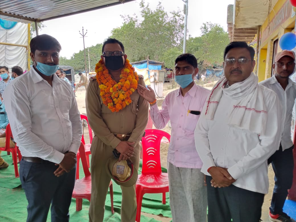 सिकंदराराऊ : भाईचारा सेवा समिति के राष्ट्रिय अध्यक्ष महेश यादव संघर्षी के नेतृत्व में गंगाविहार अगसौली चैराहा पर कोरोना संक्रमण के समाज में महत्वपूर्ण भूमिका निभाने वाले चैकी प्रभारी अगसौली अवधेश कुमार व पुलिस विभाग के योद्धाओं को स्मृति चिन्ह व फूलमालाओं से लाकडाउन में किए गए प्रसंशनीय कार्यों के लिए