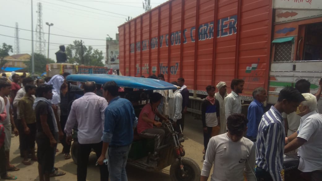 सिकंदराराऊ : कस्बा के पंत चौराहे पर एक तेज रफ्तार ट्रक ने बाइक सवार युवक को टक्कर मार दी । जिससे फलस्वरुप युवक गंभीररूप से घायल हो गया। मौके पर लोगों की भीड़ जुट गई । सूचना पर पहुंची पुलिस ने घायल को उपचार के लिए सीएचसी में भर्ती कराया। जहां से चिकित्सकों ने उसे अलीगढ़ रेफर किया है । वहीं पुलिस ने ट्रक चालक को अपनी हिरासत में लिया है ।