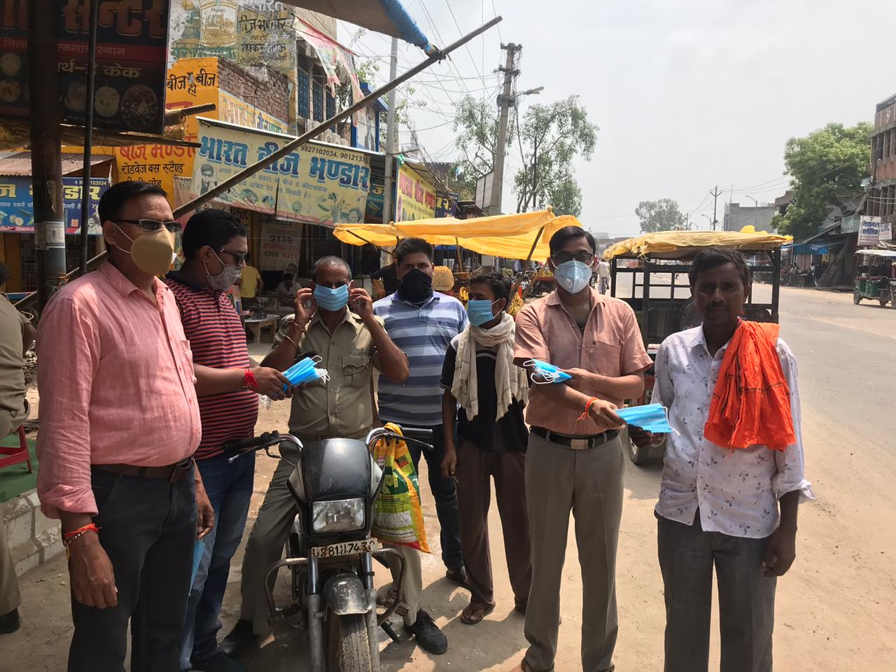 सिकंदराराऊ : अखिल भारतीय उद्योग व्यापार मंडल द्वारा स्वंत्रता दिवस के मौके पर एक केम्प रोडवेज बसस्टेण्ड पर लगाया गया। जिसमे राहगीरों को मास्क वितरित किये गए । केम्प का शुभारंभ कोतवाली प्रभारी निरीक्षक प्रवेश राणा व व्यापार मंडल अध्यक्ष संजीव महाजन द्वारा किया गया । कार्यक्रम की अध्यक्षता युवा अध्यक्ष विशाल वार्ष्णेय व संचालन युवा जिला उपाध्यक्ष रितिक गुप्ता ने किया ।