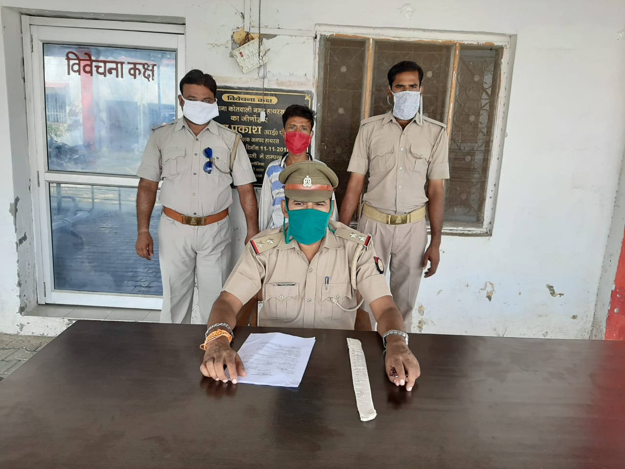 सदर कोतवाली पुलिस ने आनन्द टॉकीज के निकट से एक व्यक्ति को गिरफ्तार किया हैं । गिरफ्तार किए गए व्यक्ति के पास से पुलिस ने एक नाजायज छुरा बरामद किया हैं । पुलिस ने बताया कि व्यक्ति छुरा लेकर लोगो को धमका रहा था । गिरफ्तार किए गए अभ्युक्त का नाम विकाश कुमार हैं जो कि काशीराम कॉलोनी का रहने वाला हैं । पुलिस ने अभ्युक्त को गिरफ्तार करके जेल भेज दिया हैं ।
