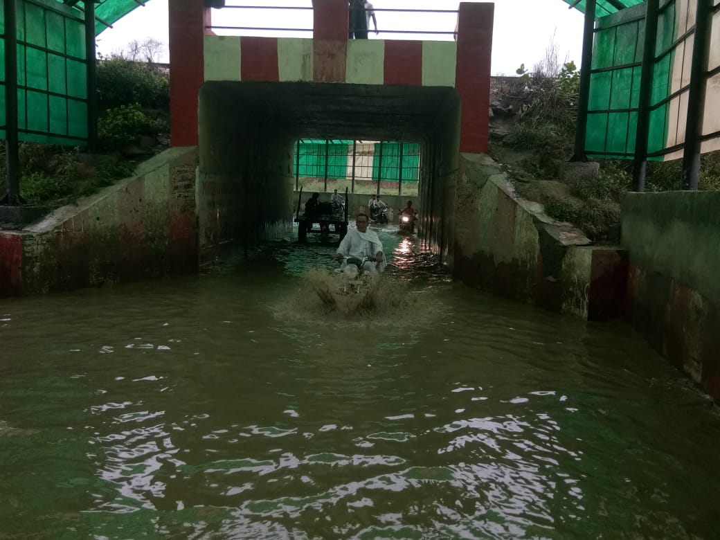 सिकंदराराऊ – जलेसर पुरदिलनगर मार्ग स्थित अंडर पास पुल के नीचे से वाहन चालकों का वाहन निकालना दूभर हो गया है। बरसात के कारण पुल के नीचे पानी भर गया है। जिससे यहाँ से गुजरने वालों को काफी परेशानी का सामना करना पड़ रहा है। रेलवे द्वारा पुल के नीचे पानी न भरे उसके लिए लाखों रुपए ख़र्च कर फाइबर सीट से पटाब कराया गया। किन्तु लाखों खर्च होने के बाबजूद पुल के नीचे पानी भरना बन्द नही हुआ।