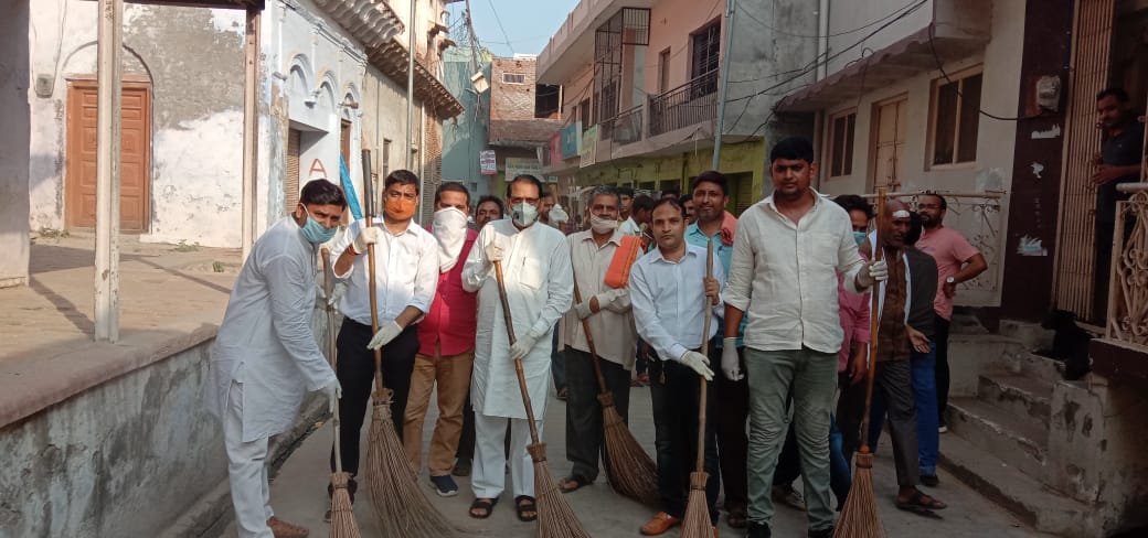 सिकंदराराऊ – भाजपाइयों ने प्रधानमंत्री नरेंद्र मोदी का 70 वॉ जन्मदिवस उत्साह सेवा सप्ताह के रूप में मनाया । इस मौके पर क्षेत्रीय विधायक वीरेंद्र सिंह राणा ने कार्यकर्ताओं के साथ मिलकर कस्बा के मोहल्ला नोरंगाबाद पश्चमी में झाड़ू लगाकर सफाई अभियान चलाया। इस दौरान राणा ने कहा कि प्रधानमंत्री के जन्मदिवस को सेवा सप्ताह के अंतर्गत मनाया जा रहा है। यह सप्ताह 14 सितंबर से 21 सितंबर मनाया जाएगा। सेवा सप्ताह के चलते पार्टी के कार्यकर्ता जगह जगह सफाई कार्य मे जुटे हुए है। इस मौके पर नगर अध्यक्ष नीरज वैश्य , पंकज गुप्ता ,अनिल सिंह, लोकेश जादौन, सुमित ठाकुर ,रामदास बाल्मीकि, मुकुल गुप्ता ,विपिन लाल ,बृज मोहन गुप्ता, आरती त्रिवेदी ,शिव कुमार सिंह ,कृष्णा यादव ,अमन गुप्ता ,वैभव गुप्ता, जगदीश सिंह ,मुकुल गुप्ता सभासद आदि मौजूद रहे।