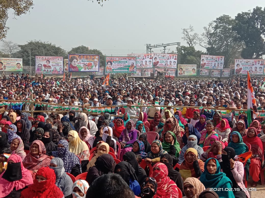 बिजनौर : प्रियंका गांधी ने भाषण की शुरुआत में कहा कि मैं भाषण देने नहीं आई हूं। जनता से बात करने आई हूँ। जनता के भरोसे पर ही नेता बड़ा बनता है। अगर भरोसा नहीं है तो नेता कभी भी बड़ा नहीं बन सकता है। प्रधानमंत्री पर बरसते हुए प्रियंका गांधी ने कहा कि जनता ने दो बार नरेंद्र मोदी को प्रधानमंत्री बनाया लेकिन जनता ने यह सोचकर बनाया कि प्रधानमंत्री कुछ काम करेंगे। छोटे व्यापारियों को बढ़ाने का काम करेंगे। बेरोजगारी हटाएंगे। लेकिन नहीं ऐसा क्या हुआ है।कृषि बिल के विरोध में प्रियंका का कहना है कि किसान लगातार दिल्ली में धरना प्रदर्शन कर रहे हैं। लेकिन यह तीन काले कानून को किसी भी कीमत पर केंद्र सरकार वापस नहीं कर रही है। यह तीनों कानून किसान विरोधी हैं और पूजी पतियों के हित में है ।इस कानून से बड़े-बड़े पूंजी पतियों की मनमर्जी चलेगी ।इस कानून के तहत प्राइवेट मंडी खोलने वाले को टैक्स दायरे में नहीं रखा गया है।जबकि सरकारी मंडी में मिलने वाले समर्थन मूल्य को धीरे-धीरे यह सरकार खत्म कर देगी। प्रियंका ने मोदी सरकार पर तंज कसते हुए कहा कि यह 2 जहाज के लिए 16 हज़ार करोड रुपए और संसद के सुंदरीकरण के लिए 20 हज़ार करोड रुपए खर्च कर सकते हैं।लेकिन किसानों का 15000 करोड़