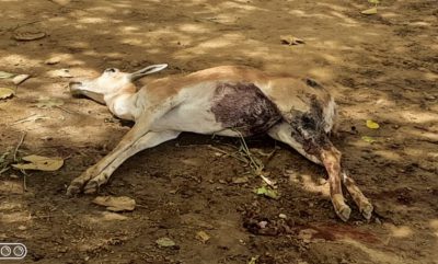सादाबाद कोतवाली की चौकी मई क्षेत्र के जंगलों का जहा एक हिरन विचरण कर रहा था वही आवारा कुत्तों ने हिरण को गिरा लिया और बुरी तरह काट लिया जिससे उसकी मौत हो गयी हिरण की मौत की सूचना मिलते ही वन विभाग की टीम मौके पर पहुँच गयी टीम द्धारा हिरन का पोस्टमार्टम कराया गया