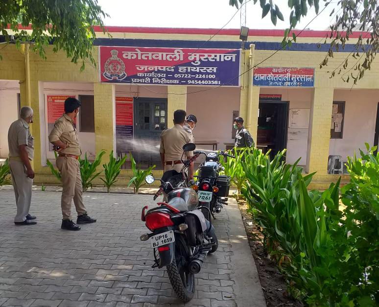 मुरसान : पुलिस अधीक्षक हाथरस विनीत जायसवाल के निर्देशन में कोविड-19 महामारी के लगातार बढते संक्रमण पर प्रभावी नियत्रंण एवं रोकथाम से बचाव हेतु वृहद स्तर पर अभियान चलाकर अग्निशमन विभाग द्वारा थाना/चौराहों/मुख्य स्थानों आदि पर सैनेटाइजेशन का कार्य किया गया । अग्निशमन टीम द्वारा सोडियम हाइड्रोक्लोराइड के घोल का छिडकाव जनपद के विभिन्न स्थानो पर किया गया । अग्निशमन टीम द्वारा फायर सर्विस वाहनों से हाथरस जनपद के थाना मुरसान तथा सामुदायिक स्वास्थ्य केन्द्र मुरसान के छिपेटी मुहल्ला वैश्यान नई बस्ती , हाथरस रोड मुरसान, स्टेशन रोड ,मसानी रोड , आदि स्थानो पर सैनेटाइजेशन का कार्य किया गया । इसके साथ ही लोगो से कोविड-19 महामारी से बचने हेतु बेवजह अपने घर से बाहर न निकलने तथा नियमित मास्क का प्रयोग करने तथा हाथो को नियमित रुप से सैनेटाइज करते रहने हेतु तथा जनपद में जारी कोरोना कर्फ्यू का शतप्रतिशत पालन करने हेतु अपील की गयी ।
