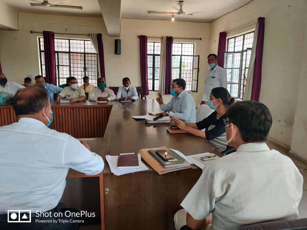 सादाबाद तहसील सभागार का जहां एसडीएम विपिन शिवहरे ने अधीनस्थों के साथ विभिन्न योजनाएं जिसमें राशन वितरण, तालाब कब्जा मुक्त अभियान अवैध खनन आदि पर ध्यान देने के लिए समीक्षा बैठक की गई है समीक्षा बैठक में एसडीएम विपिन शिवहरे के अलावा तहसीलदार निधि भारद्वाज नायब तहसीलदार राकेश चंद्रा एवं समस्त लेखपाल उपस्थित रहे