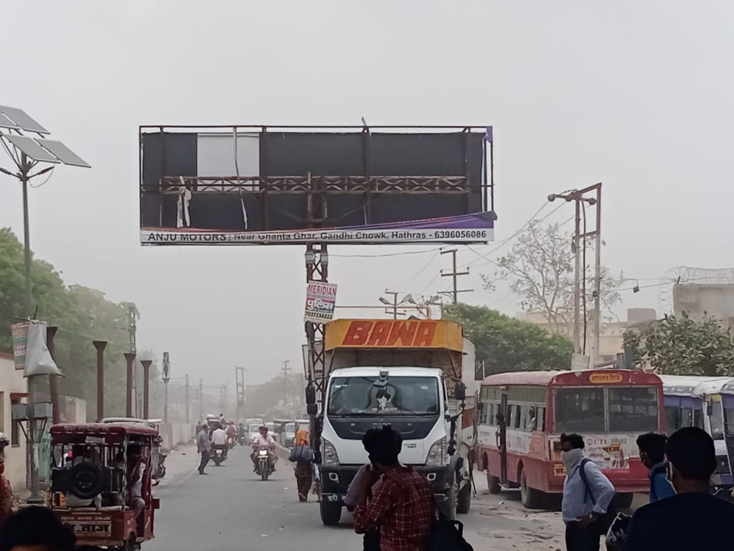हाथरस : प्रदेश भर में लगातार पड़ रही गर्मी से आज थोड़ी बहुत राहत हाथरस शहर वासियो को मिली । आज शनिवार के दिन दोपहर के समय धूल भरी आंधी के साथ – साथ ठंडी हवाएं चली । सडको पर धूल भरी आंधी से धुंध छाई हुई नजर आई । आसमान में बादल छाए हुए नजर आए । ऐसा लग रहा था कि मानो कही बारिश न हो जाए ।