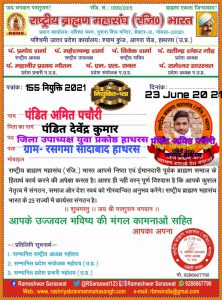 सादाबाद (हाथरस) : ब्राह्मण समाज में मजबूती देने वाले सामाजिक संगठन राष्ट्रीय ब्राह्मण महासंघ भारत की युवा इकाई का गठन किया गया जिसमें कि सादाबाद ग्राम रसगमा के रहने वाले पंडित अमित पचौरी को जिला उपाध्यक्ष पद पर मनोनीत किया गया , पंडित अमित पचौरी के जिला उपाध्यक्ष बनाए जाने पर युवाओं ने हर्ष जाहिर किया ।