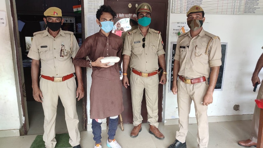 सोमवार को एसएचओ गौरव सक्सैना के अनुसार कस्बा में गश्त के दौरान उन्हें सूचना मिली कि एक युवक संदिग्ध दिखाई दे रहा है उसके पास हाथ में लटकी पाॅलिथिन में कुछ नशीला पदार्थ हैं एसएचओ ने सूचना का गंभीरता से लेते हुए रूदायन रोड पर कस्बा इंचार्ज विपिन यादव एवं हमराह के साथ पहुंचे तो युवक पुलिस को देखकर तेज चलने लगा। रोकने का इशारा करने पर युवक भागने लगा। तब पुलिस ने भी दौड लगाकर भाग रहे युवक को दबोच लिया और कोतवाली ले आए। जहां उसकी जामा तलाशी में पुलिस ने 750 ग्राम नशीला पाउडर बरामद किया। पूछताछ में युवक ने पुलिस को अपना नाम तालिब पुत्र बली मोहम्मद निवासी पारस कालोनी बताया है। पुलिस ने मादक पदार्थ अधिनियम के तहत अभियोग पंजीकृतकर आरागेपी को जेल भेजा है।