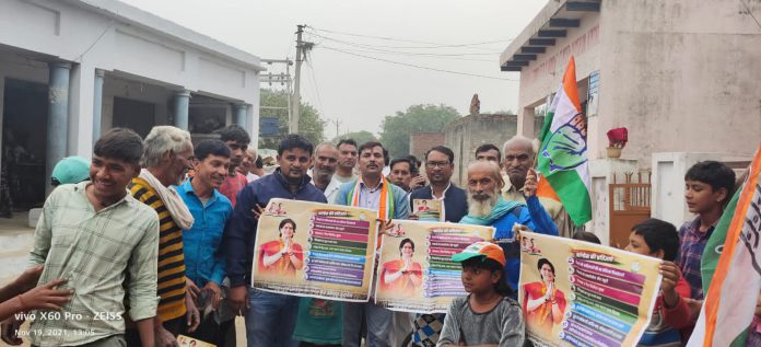 सासनी : कोंग्रेसजनों ने पूर्व प्रधानमंत्री आयरन लेडी श्रीमती इंदिरा गांधी जी की जयंती बढ़ी धूमधाम से मनाई और प्रदेश प्रभारी प्रियंका गांधी जी की महंगाई हटाओ प्रतिज्ञा पद यात्रा का शुभारंभ सासनी ब्लॉक मे किया।
