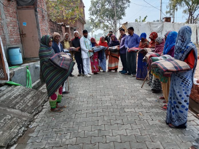आपको बता दें कि हाथरस जंक्शन क्षेत्र के गांव लाडपुर में बढ़ती शीतलहर को देखते हुए ग्राम प्रधान कृष्ण गोपाल माहौर के द्वारा निराश्रित गरीब असहाय बुजुर्ग महिलाओं को कंबल वितरण किए गए कंबल पाकर गरीब असहाय महिलाओं के चेहरे पर दौड़ी खुशी की लहर इस मौके पर रवि चौधरी संजीव कुमार राजेश कुमार वीरेंद्र कुमारमाहौर प्रधान प्रतिनिधि आदि लोग मौजूद रहे|