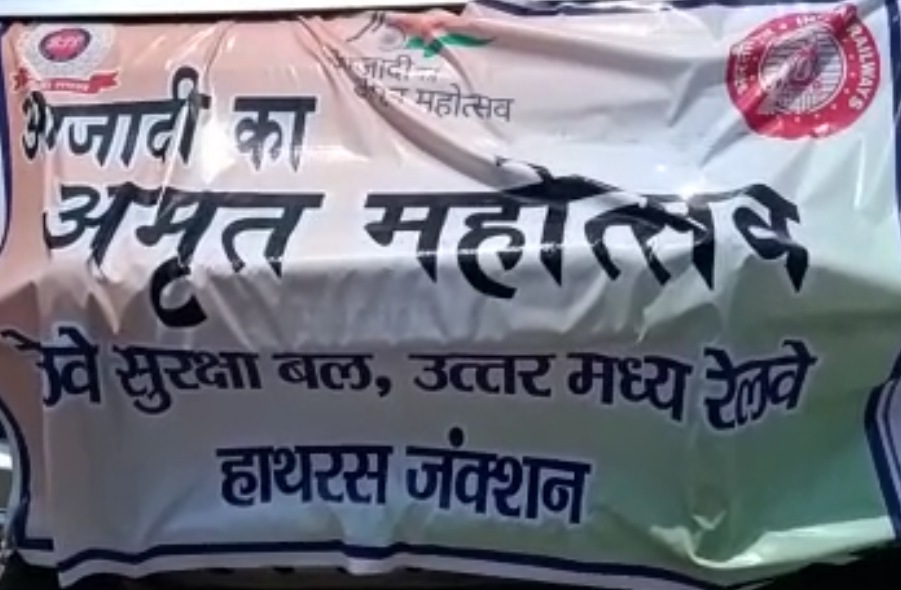 हाथरस। उत्तरमध्य रेलवे के प्रयागराज से बाइक जागरूक रैली का आयोजन किया गया आज भारतीय रेलवे के निर्देशानुसार रेलवे सुरक्षा बल हाथरस जंक्शन द्वारा 75 वां आजादी का अमृत महोत्सव मनाया जा रहा है जिसके तहत निन्न कार्यक्रम किए जा रहे हैं यात्रियों को शीतल जल पेयजल व्यवस्था का कार्यक्रम वातावरण सुरक्षा हेतु रेलवे परिसर में वृक्षारोपण कार्यक्रम रेलवे सुरक्षा बल सदस्यों द्वारा बाइक रैली के माध्यम से 75 वाॅ आजादी का अमृत महोत्सव बनाए जाने के संबंध में जागरूक अभियान यात्रियों को यात्रा के दौरान सुरक्षा व्यवस्था की मदद हेतु हैल्प लाइन नंबर 139 प्रयोग करने हेतु जागरूक अभियान चलाया जा रहा है ।