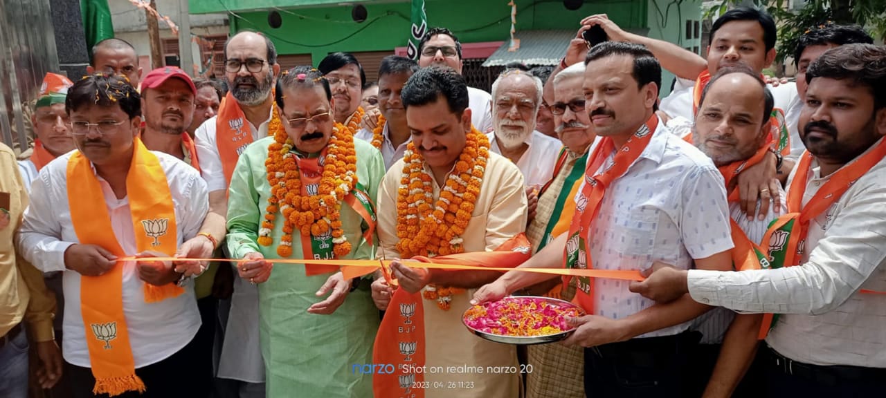 पुरदिल नगर : पथवारी गेट स्थित नगर पंचायत अध्यक्ष पद के प्रत्याशी हर्ष कान्त कुशवाह के आवास पर उत्तर प्रदेश सरकार के समाज कल्याण मंत्री असीम अरुण के द्वारा कार्यालय का फीता काटकर उद्घाटन ककिया गया। कार्यकर्ताओं के द्वारा मुख्य अतिथि का फूल माला पहनाकर स्वागत किया तथा प्रत्याशी द्वारा राज्य मंत्री असीम अरूण का भव्य माला पहनाकर एवं प्रतीक चिन्ह भेंट कर भव्य स्वागत किया गया।