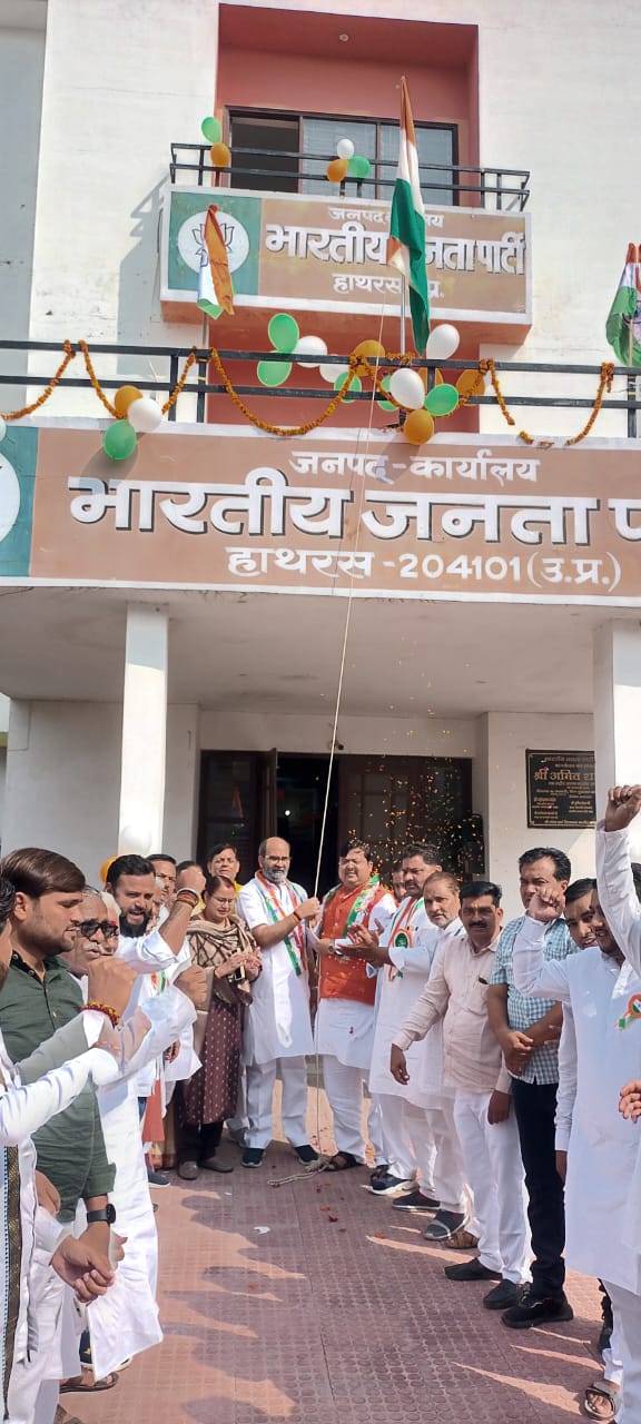 हाथरस : भाजपा जिला कार्यालय हाथरस पर आजादी के अमृत महोत्सव के तहत 77वां स्वतंत्रता दिवस भाजपा जिलाध्यक्ष गौरव आर्य के नेतृत्व में जिला प्रभारी चौ० देवेन्द्र सिंह एवं सदर विधायक अंजुला सिंह माहौर के साथ संयुक्त रूप से ध्वज रोहण कर हर्ष उल्लास के साथ मिठाई वितरण कर मनाया गया | जिलाध्यक्ष गौरव आर्य ने बताया कि आज भारत की स्वतंत्रता के 76 वर्ष पूर्ण हो गए है मा० प्रधानमंत्री श्री नरेन्द्र मोदी ने 12 मार्च 2021 को अहमदाबाद के साबरमती आश्रम में आजादी के अमृत महोत्सव का उद्घाटन किया था क्योकि इसी दिन महात्मा गाँधी ने ‘नमक सत्याग्रह की शुरुआत की थी | हम सभी आज आजादी का अमृत महोत्सव मना रहे है क्योकि भारत को अग्रेजो की गुलामी से आजादी मिली थी, देश को स्वतंत्र कराने के लिए जिन राष्ट्र सपूतो ने वलिदान दिए और बहुत कष्ट सहन किये उसको याद करने का दिन है | जिला प्रभारी चौ० देवेन्द्र सिंह ने कहा कि वर्तमान समय में जो युवा पीढ़ी यह आजादी के संघर्ष और लोकतंत्र के महत्व को बेहतर ढंग से नहीं जानती है कई विचारधाराओं में बटी हुई पीढ़ी गुमराही के एक चौराहे पर खड़ी है ऐसे में उनको देश के इतिहास और वर्तमान से जोड़ना जरुरी है इसीलिए आज पूरे देश में अमृत महोत्सव बनाया जा रहा है एवं भारत की अर्थव्यवस्था विश्व की पांचवीं सबसे बड़ी अर्थव्यवस्था है। और देश के यशस्वी प्रधानमंत्री श्री नरेन्द्र मोदी जी के नेतृत्व में बहुत जल्द भारत विश्व की तीसरी सबसे बड़ी अर्थव्यवस्था बनेगी | सदर विधायक अंजुला सिंह माहौर ने कहा कि आज भारत एक परमाणु शक्ति होने के साथ ही बड़ी सैन्य शक्ति भी है यही नहीं चाँद और मंगल पर मानव रहित मिशन भेजने वाले 5 देशो की सूची में भारत का नाम भी शामिल है जो कि हर भारतवासी के लिए गर्व की बात है भारत ही एकमात्र ऐसा देश है जिसने बहुत कम खर्चो में मंगल मिशन को पहली बार में ही सफल बनाया और उत्पादन में भी भारत ने कई देशो को पीछे छोड़ दिया है | इस कार्यक्रम में जिला महामंत्री हरिशंकर राना, जिला उपाध्यक्ष प्रेमसिंह कुशवाहा, संतराज सिंह, विष्णु बघेल, सुनीता वर्मा, अनुराग अग्निहोत्री, मोहित बघेल, सत्यपाल सिंह मदनावत, संजय सक्सेना, मोहित शर्मा, मुंशीराम चटावले, दयावती चटावले, स्मृति पाठक, मोहन पंडित, मूलचंद वार्ष्णेय, शरद माहेश्वरी, कृष्णमुरारी वार्ष्णेय, सचिन वर्मा, हरीश सेंगर, पंकज पालावत, रजत अग्रवाल, नवनीत गौतम, प्रवीन कुमार, अभिषेक शर्मा, शुभम मंडल, अमन गोस्वामी, विकास माहौर आदि भाजपा कार्यकर्ता उपस्थित रहे |