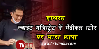 हाथरस में ज्वाइंट मजिस्ट्रेट प्रेम प्रकाश मीणा ने मेडिकल स्टोर पर...