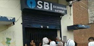 सिकंदराराऊ : एसबीआई में हुई सामाजिक दूरी नरारद