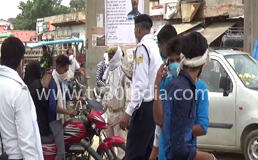 हाथरस के तालाब चौराहे पर ट्रैफिक पुलिस द्वारा बिना मास्क पहने...