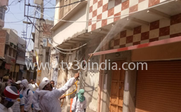 सिकंदराराऊ : पालिका कर्मचारी कस्बा को सेनेटाइज करने में जुटे