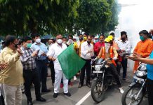 आगरा शहर की संकरी गलियों में कोरोना वायरस और मौसमी संक्रमण रोकने के लिए पोर्टेबल थर्मल फॉगिंग मशीनों का शुभारंभ करते महापौर नवीन जैन...