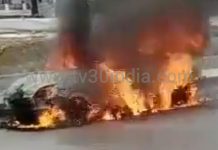 आगरा : सड़क पर चलती कार बनी आग का गोला