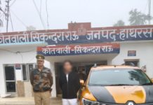 सिकंन्द्राराऊ जीटी रोड पर चलती कार से स्टंट, युवक गिरफ्तार, वाहन सीज