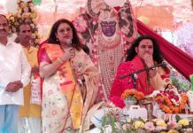 नयाबांस में श्रीमद भगवत कथा का श्रवण करने पहुंची पालिकाध्यक्ष श्वेता चौधरी