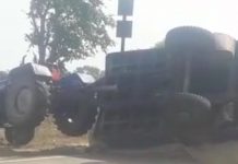 हाथरस : तेज रफ्तार ट्रक ने भुस से भरी टैक्टर ट्राली में मारी टक्कर