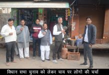 मुरसान : चाय की दुकान पर विधानसभा चुनाव को लेकर लोगो की ...