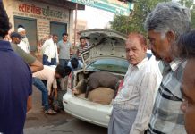 सादाबाद : पुलिस की गाड़ी देख अपनी गाड़ी छोड़ भागे बदमाश