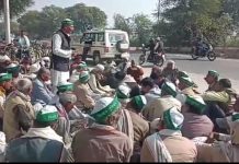 सादाबाद : विसावर में किसान यूनियन द्वारा किया धरना प्रदर्शन