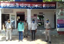 हाथरस : चंदपा कोतवाली पुलिस ने दो युवकों को चार देशी शराब की पेटी...