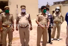 बिना मास्क लगाये हुए बैंक ग्राहकों पर भी है हाथरस पुलिस की पैनी नजर