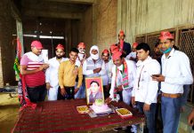 सिकंदराराऊ में सपाइयों ने अखिलेश यादव का केक काटकर मनाया जन्मदिन