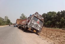 सिकंदराराऊ अलीगढ़ रोड स्थित गांव हुसैनपुर के समीप ट्रक पलटने से बचा