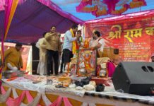 सिकंदराराऊ : क्षेत्र के गांव नगला मधुकर में आयोजित श्री राम कथा में प्रमुख उद्योगपति देवेंद्र सिंह राघव ने व्यास गद्दी का पूजन कर...