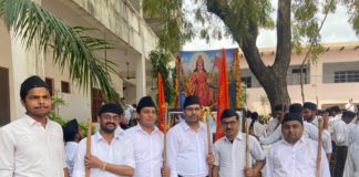 सिकंदराराऊ : संघ कार्यकर्ताओ ने किया नगर में पथ संचलन